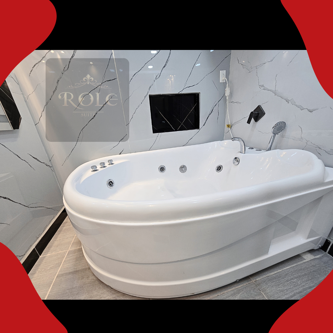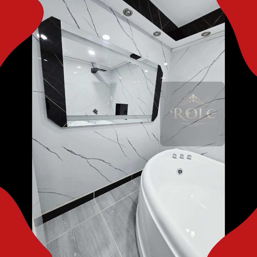 -Baño privado con acabados de mármol y amenidades de lujo.